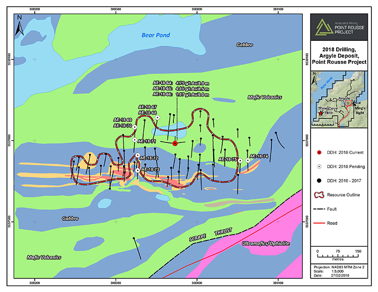 The Argyle Gold Deposit is a development stage project that forms a significant part of the Company’s strategy for continued and expanded gold production at it’s Point Rousse Project.  The Argyle Deposit is located 4.5 kilometres from the Pine Cove Mine and Mill Complex near the community of Ming’s Bight, Newfoundland and Labrador.